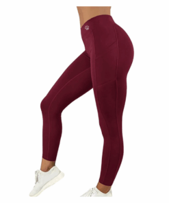GYMPANTHER Sexy Stretchy Sportswear Leggings with Phone Pocket – Wine Red – S