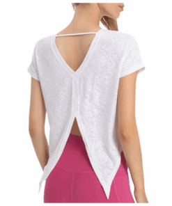 GYMPANTHER Sheer Strappy T-Shirt with Tie Back – White Purity – S