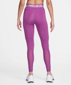 Nike Women’s Pro Mid-Rise Mesh-Paneled Leggings – Hot Fuchsia/White – XS