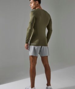 boohooMAN – Men’s Active Base Layer Long Sleeve T-shirt – Khaki – L
