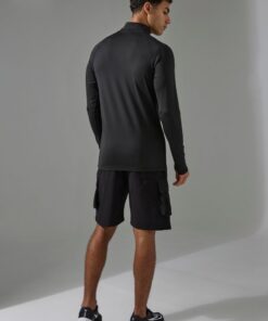 boohooMAN – Men’s Active Muscle Fit Quarter Zip Neon Logo Track Top – Black – M