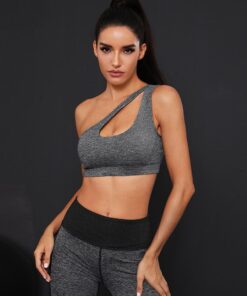 Women’s Top One-Shoulder Running Yoga Wireless Yoga Sports Bra – Grey – M