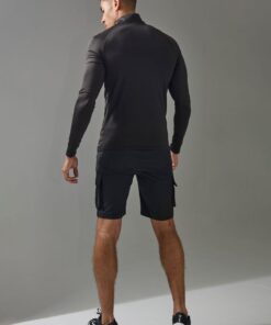 boohooMAN – Mens Active Performance Pro Muscle Quarter Zip Track Top -Black – XL