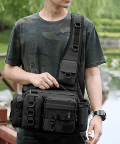 Adjustable Fishing Tackle Bag Fishing Gear Bag Waterproof Storage Bag – Black