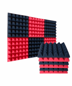 Pyramid Acoustic Foam Sound Panels – 30cm – 12 Pack – Red, Black