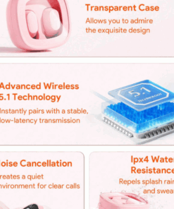 JMMO – T209 – Wireless Hi-Fi Stereo Earbuds With Charging Case – Pink