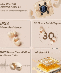 JMMO – T211 – Wireless Ear Clip Earbuds With LED Display Case – Beige