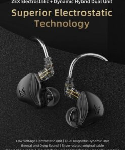 KZ ZEX Electrostatic + Dual Dynamic Driver Earphones Headphones + Mic&Case – Dark Knight