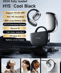 PICUN – H1S – Voice Control Earbuds With LED Power Display Case – Black