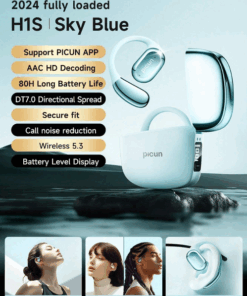 PICUN – H1S – Voice Control Earbuds With LED Power Display Case -Light Blue