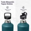 -2 Caps Pack, Leak-Proof: stainless steel water bottle comes with 2 lids: portable handle lid, and flip-up straw lid to meet camping, hiking, cycling, fitness sports and more. Each lid has a thickened 360 seal for 100% leak-proof.