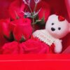 The rose flower in this gift box is made of soap, has fragrance, and can be used for hand washing or incense