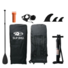 Upgraded accessories | heavy duty zip backpack for all your gear; new super ergonomic pump with a shock-proof gauge and higher volume for easier and quicker inflation; paddle with an extended length and reinforced blade for better paddling efficiency.