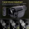 -984ft Ultra Long Viewing Angle – Built-in 850nm IR LED illuminates you to see your target clearly up to 984ft in complete darkness. 7 levels of adjustable IR brightness for optimal visibility at night. The higher the infrared adjustment, the clearer the image