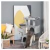 -Features sisal scratching posts, side hammock, scratching pad ramp, large top perch bed, two houses, and hanging ball – an all-in-one spot to play and rest. The scratching posts keep them away from using your furniture. It also comes with a solid base to keep the balance and will become their newfound favorite spot.