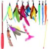 12 Pcs Interactive Cat Toys Wand Teaser Toy Cat Feather Refills with Bell