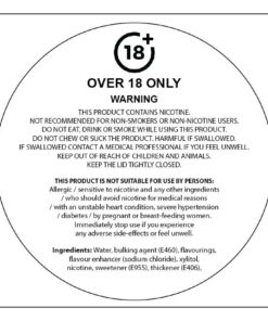 Warning: Not for sale to person/s under the age of 18 years! Contains nicotine.