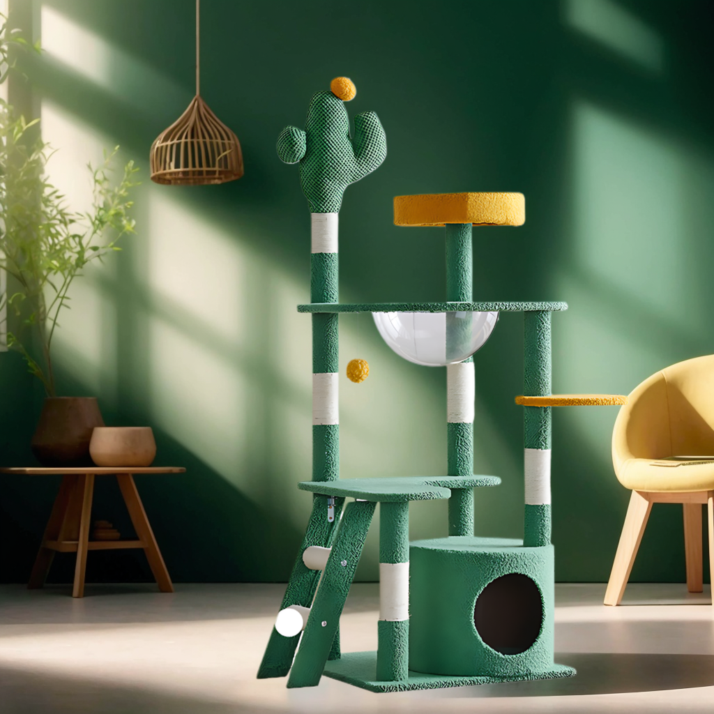 The specially designed high platform allows your feline companions to enjoy their relaxing time high up there, making this cat furniture their ultimate sweet home.