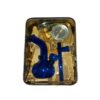 Mini water bongs have been around for a long time, it's like an old faithful friend very reliable. Made from Borosilicate glass in a variety of painted colours, also the 10cm matching glass pipes. A 4pc metal pollen grinder completes the combo, a perfect gift or starter set.