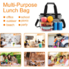Convenient & Portable: The lid of this cooler lunch bag can be opened up widely with strong two-way zippers, which means you can put your lunch container into the bag and take out of the bag vertically. Prevent liquids from leaking out of the container and soiling inside the bag. Tough handles and shoulder girdle allows you to carry it easily. Moreover, the front and side extra pocket can hold small items like keys and earbuds.