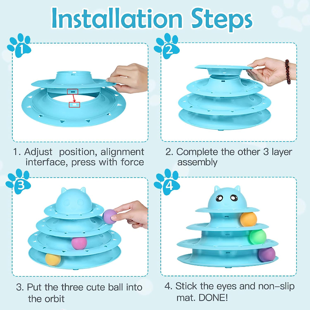 High-Quality Toys: This cat roller toy is made of ultra-strong and tear-resistant PP that stands up to crazy cat scratcher antics, a detachable multi-layer for easy cleanup, with anti-slip mat to prevent product rollover. So it is perfect for one or more cats. Other interactive cat teaser toys are made from premium materials, very durable and useful.