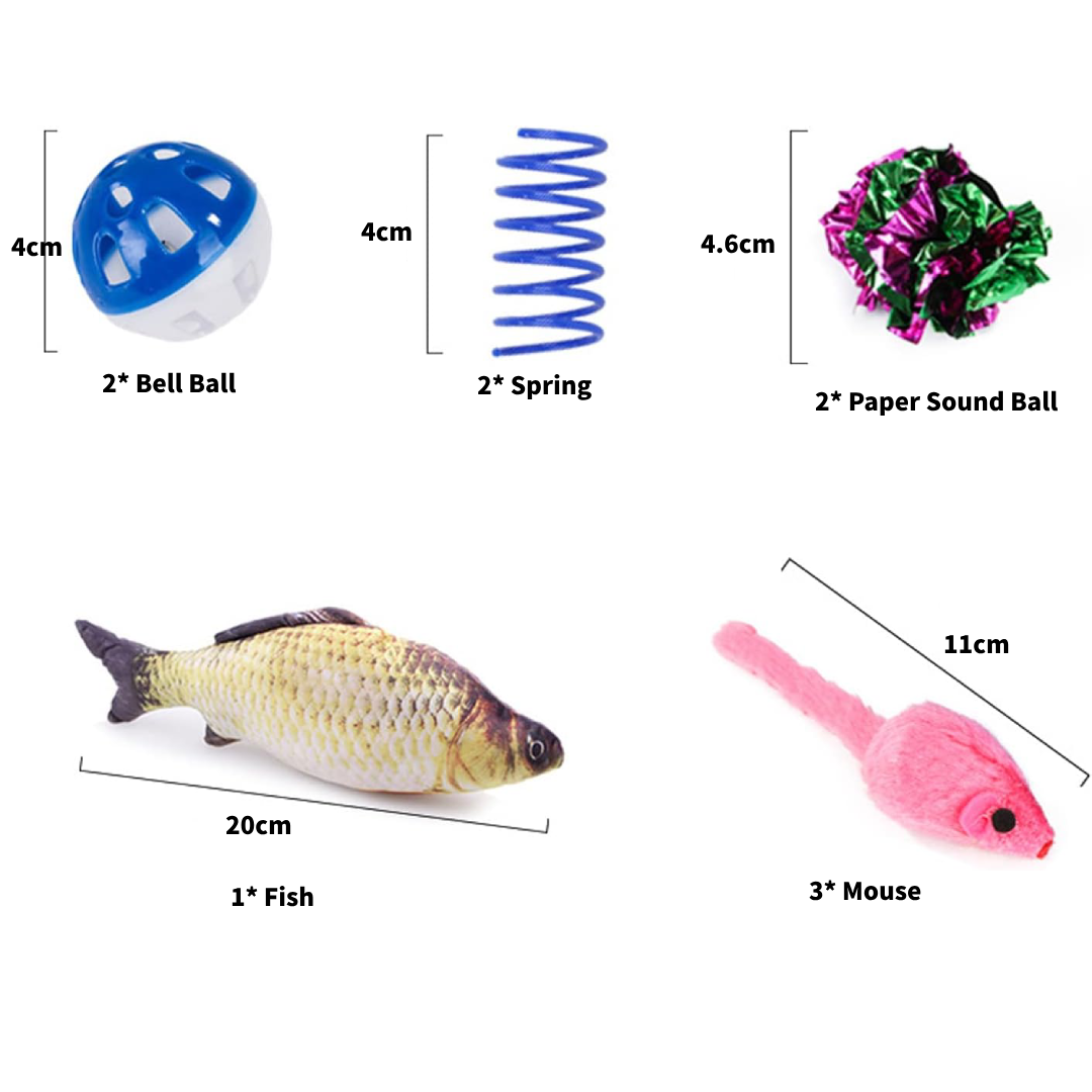 16 PCS Value Pack Cat Toys: 16 pieces cat toys with cat toy roller, cat teaser wand, interactive feather toy, mouse, crinkle balls and etc. This variety pack toy fits all cat’s needs, keeping your kitten interesting. Holiday and birthday special gifts for your cats.