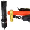 – This flashlight has an orange finish and is extremely resistant and weatherproof with heavy-duty plastic construction.