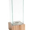 – Wooden base with glass panels creates a fascinating twirling flame.