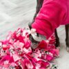 – Put treats or dry kibble inside/between the folds (and even underneath) and let your dog, cat, bunny, bird, etc “snuffle” for them