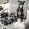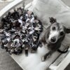 – Put treats or dry kibble inside/between the folds (and even underneath) and let your dog, cat, bunny, bird, etc “snuffle” for them