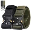 2 Pack Tactical Belt With Keychain Holder Gears Quick Release Buckle Belt – black+army green
