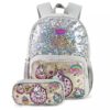 2 Pcs Set Cute Unicorn School Glitter Sequin Backpack – Pink
