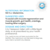 Brain health and stability: L-Glutamine is known in balancing brain health and is a major fuel source for the brain.