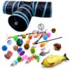 Cat toy set cat tunnel made of ultra-strong, tear-resistant polyester wrapped around a sprung-steel frame with protective ends for cat safety. This cat accessory will stand up to crazy cat antics for years to come.