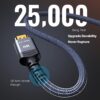 Reinforced classic high-quality materials This 8K HDMI Cord uses most popular classic style, with a new smart chip, making it reach an unprecedented height. The strength of the aluminum alloy shell and the tail’s anti-bending design has been upgraded to make it more durable. The plug part is still made of 24K gold-plated material, which accurately transmits signals. The military grade tensile nylon material also greatly extends its life.