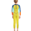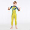 The wetsuit for kids is made of 2mm neoprene. The kids wetsuits can keep the body warm, help your child float more easily in the water, and help your child master swimming and diving skills faster.