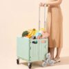 Multiple purposes With 65L large volume and superior load-bearing capacity, Our heavy duty utility cart is not only for shopping, but also you can use it as a file box, a seat, a camping table, tools, books or art supplies storage box and so on to save your time, your energy and make your life more convenient. Note: Please assist with the other hand when the cart is fully loaded.