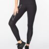 – Mid-rise power mesh waistband for body sculpting secure fit with three back pockets provide bounce-free storage for phone, cards and keys as well as gels.