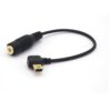 – The mic adapter cable has a female microphone jack that works with a common 3 Pole TRS stereo audio plug.