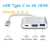 1 x 3 in1 Type C to USB-C 4K HDMI USB 3.0 Hub Adapter Cable -CA-30A