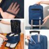 Crafted from high-quality materials, this travel organizer is built to endure the rigors of travel. Your shoes and belongings are safeguarded as you navigate various terrains and climates. Its compact and portable design ensures it won’t take up too much precious luggage space. This sleek, slim organizer is your perfect travel companion, keeping your essentials in check and your luggage clutter-free.