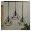 Illuminate your dining room or living room with this striking cluster pendant features three graduated diamond shaped lights suspended from a rectangular plate on antique-finished rods artfully displayed at different heights. Rich rustic and unmistakably stylish this gorgeous 3-light hanging fixture marries brilliant character with impeccable taste. The lights hang at separate lengths supported from an antique iron base. Fits E27 Edison Vintage bulbs (Bulbs not included)