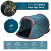 Your instant home away from home in the great outdoors! Designed for hassle-free camping, this tent offers a perfect blend of convenience and comfort, ensuring that your outdoor adventures are as enjoyable as they are memorable. With an innovative pop-up design, you can have your shelter ready within seconds. No more struggling with complicated poles and instructions – simply unzip the carry bag, and your tent will do the rest. Setdown is just as easy as the tent simply folds down, ready to be stored away in the included carry bag. With its user-friendly design and reliable build, this tent is the ultimate camping companion, allowing you to focus on nature and relaxation rather than setup and teardown.