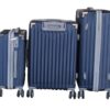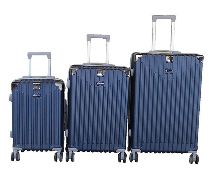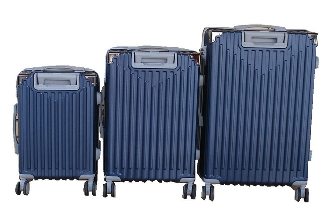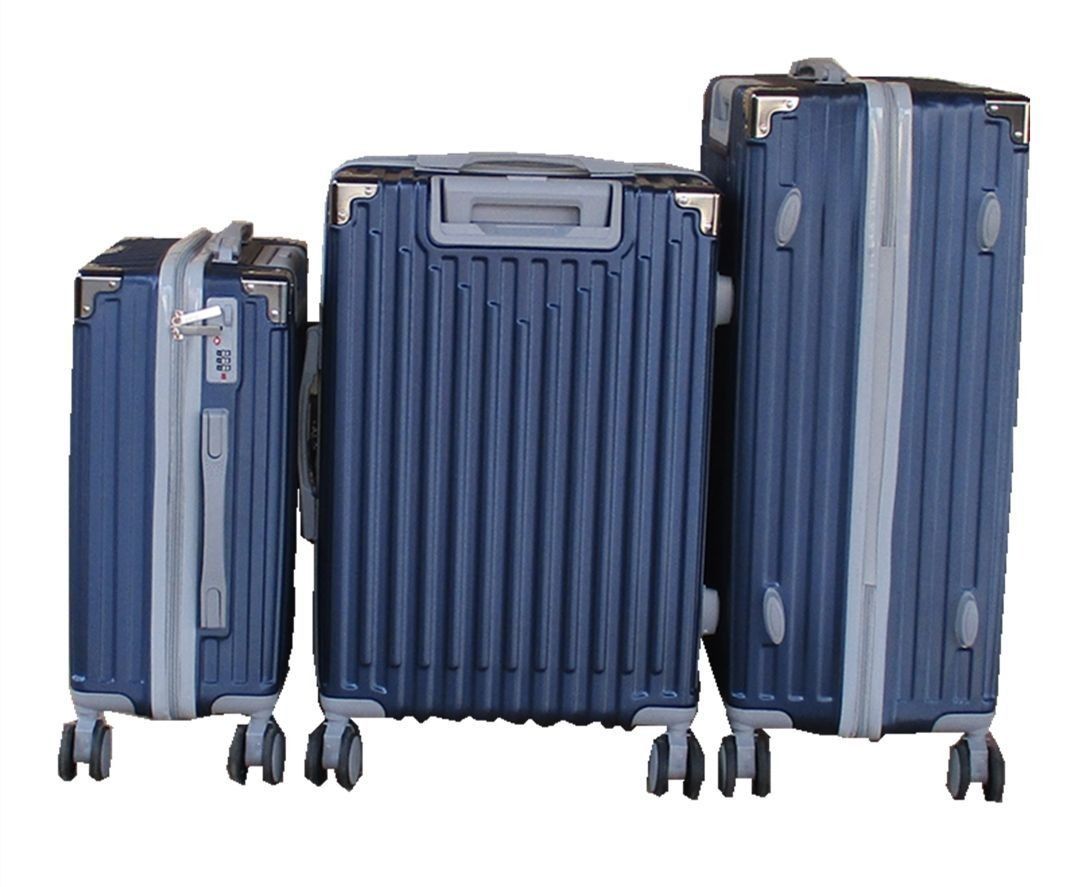Travel effortlessly with this stylish and durable 3-piece ABS luggage set, designed to meet the demands of modern travel. This set includes small, medium, and large sizes to suit various journey lengths and allows easy nesting for compact storage. Constructed from resilient ABS material, each case features a sleek navy blue hardshell exterior with a vertical ribbed design that resists scratches and abrasions while providing a modern aesthetic. Reinforced with metallic corner protectors and side handles, these cases are built to withstand the rigors of travel.