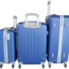 Luggage set, 3-piece luggage set, ABS luggage, spinner suitcase, hard-shell luggage, travel suitcases, durable luggage, scratch-resistant suitcase, lightweight luggage, nested luggage, blue luggage set, secure travel luggage, 360-degree spinner wheels, telescoping handle luggage, fully lined suitcase, built-in lock luggage, durable ABS material, travel-friendly suitcase, reinforced corners, stylish travel luggage.