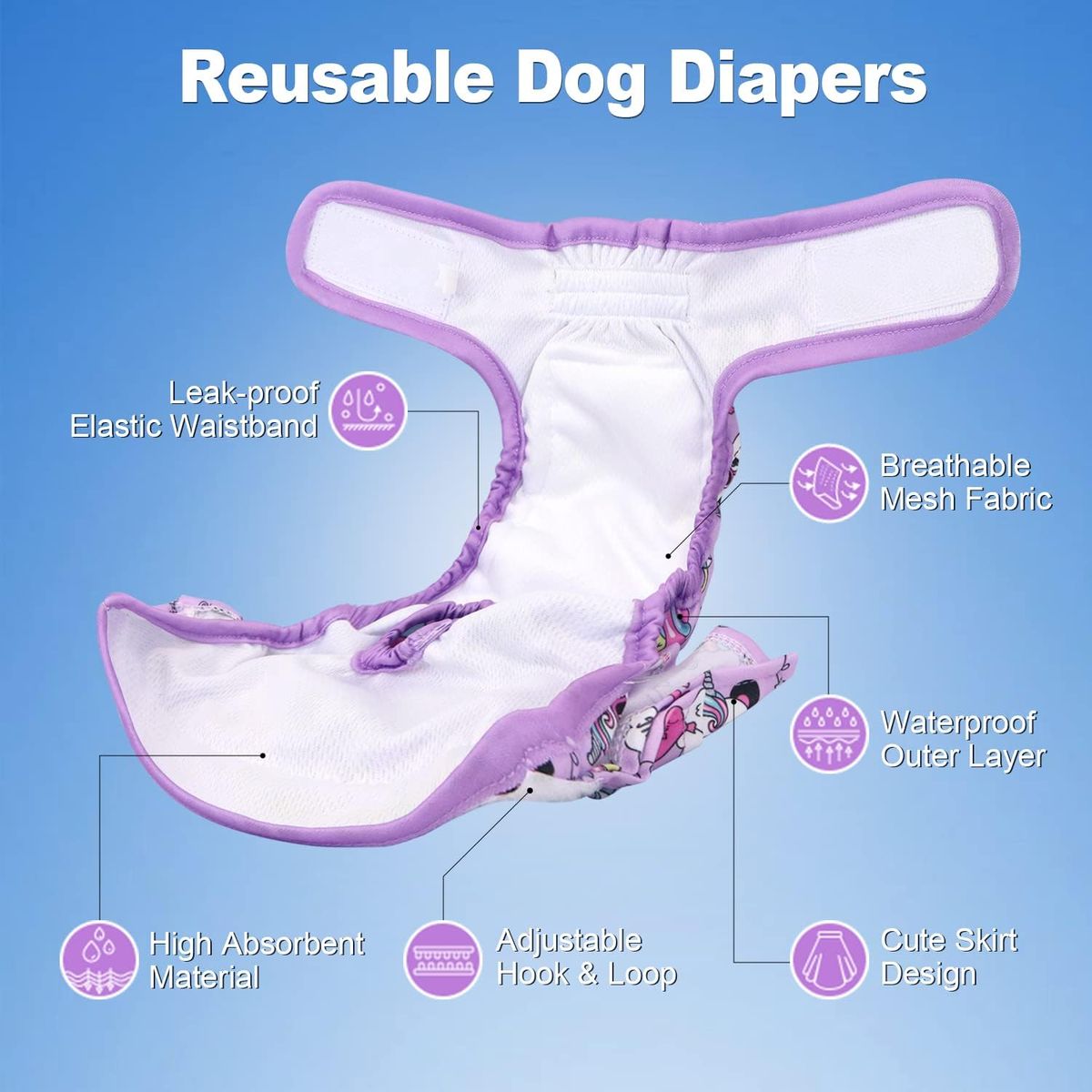 Washable and Reusable The reusable diapers are well made and the great thing is that you can wash them and reuse them. And since the dog diapers are made with precise stitching and quality fabrics, diapers for dogs female can stand up to frequently washing and everyday use.