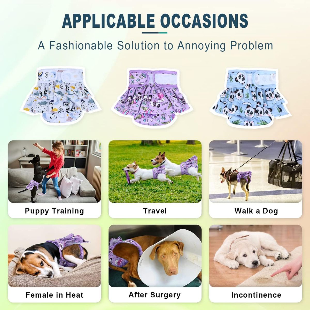 Multipurpose This dog diapers for female can be applied to puppy training and the dog in incontinence, heat, surgery recovery, excitable urination. It also works well in dog’s period to help dog keep dry and comfortable. With our diapers, both of your furry friend and you can enjoy yourselves without worrying and improve mutual bond at the same time.