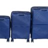 Travel in style and durability with this 3-piece trolley luggage set, made from unbreakable polypropylene (PP) material. Featuring a textured wave-like exterior, this navy set offers a sleek design while being impact-resistant. The luggage set includes three suitcases of varying sizes, perfect for any trip-whether short or long. Each suitcase is equipped with 4 smooth-rolling spinner wheels, a secure combination lock for peace of mind, and height-adjustable handles with a push-button mechanism for easy use. The organized interior boasts cross straps and zippered compartments for neat packing. With durable zippers and metal pulls, this set ensures both function and style for the modern traveler.