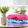 3 pieces DOGGIE DIAPERS: One Each of Hot Pink, Purple and Aqua.These washable doggy diapers are more comfortable and stylish than the disposable dog diapers.