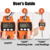 Multi-function and accuracy: You can adjust the weight from LB to KG very conveniently and easily. The increment is 0.05kg / 0.02 pounds / 0.1N. The accuracy is ± 0.1%. Including heavy duty animals, hogs, deer, meat, farm produce, outing, adventure, barn, archery game, etc